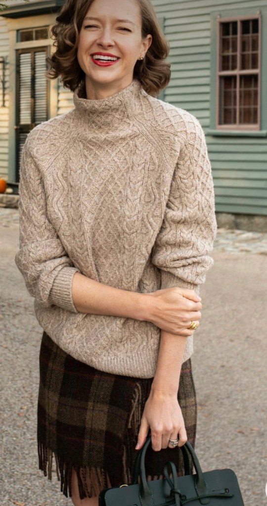 Pair an Aran sweater with a skirt and tights for a charming and rustic look.