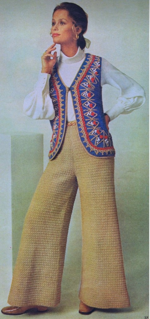 Yes, you read that right. Knitted. Crochet. Bell-bottoms.